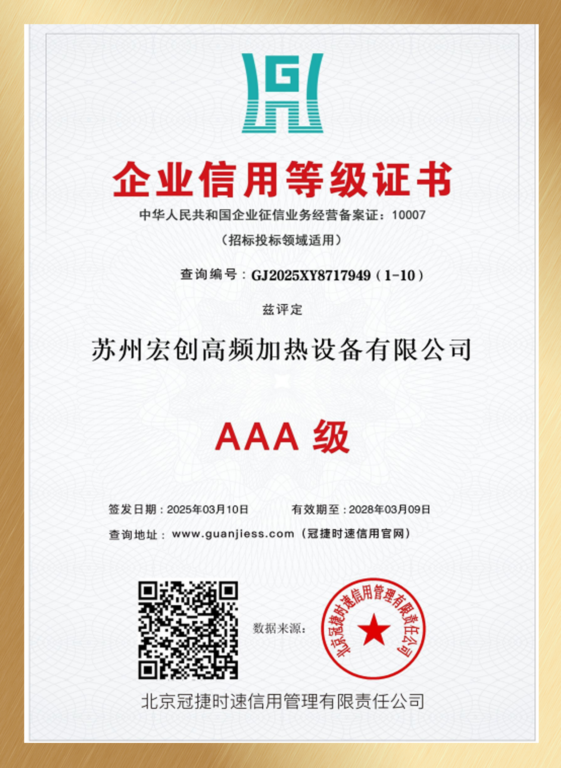 诚信供应商3A级信用企业